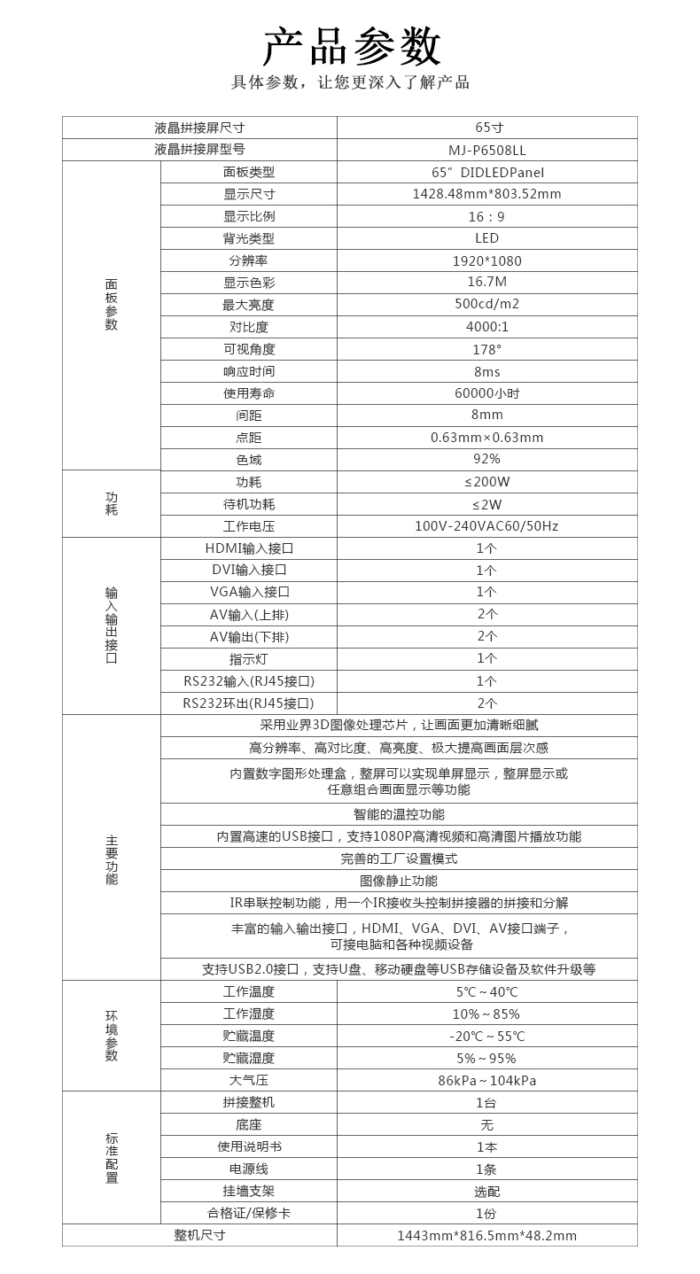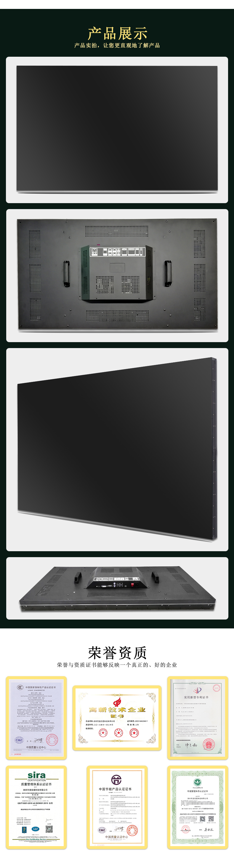 【美佳愛-4k液晶拼接屏生產(chǎn)廠家電話400-997-9971】LG65寸液晶拼接屏-拼縫8mm產(chǎn)品通過ISO9001_3C_節(jié)能認證等30多項認證,主營LG/京東方/三星大屏幕電視墻,其尺寸有32寸40寸43寸46寸49寸55寸65寸75寸液晶拼接單元,也有曲面,弧形,柔性,無縫LED顯示屏,顯示器,超窄邊高清監(jiān)視器,提供企業(yè)展廳展示,KTV,酒吧,會議室,視頻監(jiān)控系統(tǒng)解決方案設計-報價-安裝施工-售后超窄邊維修等服務