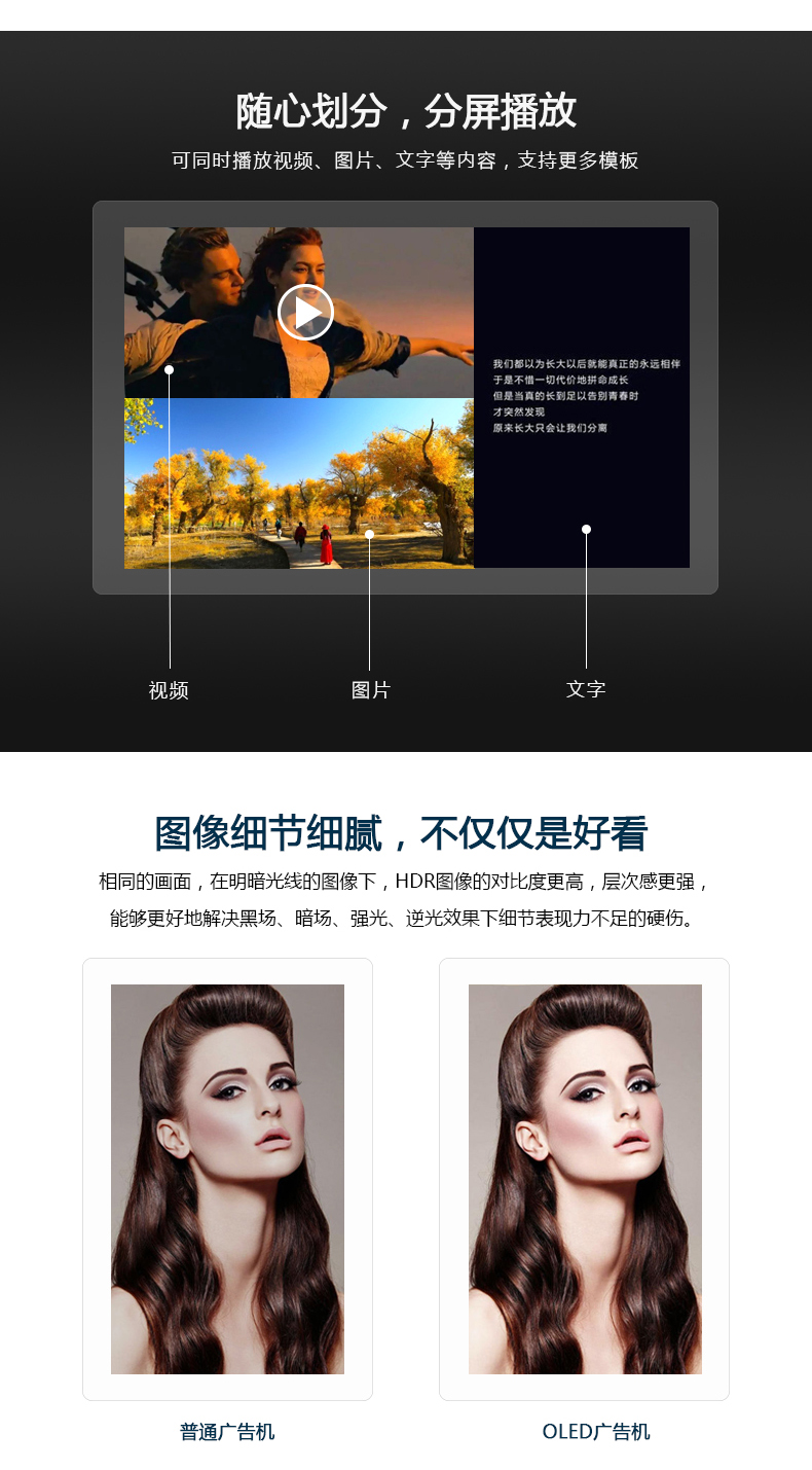 【深圳市美佳愛(ài)-液晶廣告機(jī),觸摸一體機(jī)生產(chǎn)廠家電話400-997-9971】77寸超薄OLED雙面吊掛廣告機(jī)ISO9001_3C認(rèn)證,主營(yíng)多點(diǎn)紅外/電容式觸摸屏一體機(jī),觸控查詢一體機(jī),其他尺寸18.5寸21寸24寸27寸32寸40寸43寸46寸49寸55寸65寸75寸86寸98寸100寸多功能多媒體教學(xué)會(huì)議一體機(jī),戶外立式/壁掛雙面廣告機(jī),單機(jī)版/安卓網(wǎng)絡(luò)廣告機(jī) 豎屏樓宇電梯廣告機(jī),長(zhǎng)條型屏,工業(yè)級(jí)工控電腦觸摸顯示器,大尺寸觸摸屏查詢系統(tǒng),商顯平板電腦電視,提供報(bào)價(jià)價(jià)格,安裝施工,售后維修等