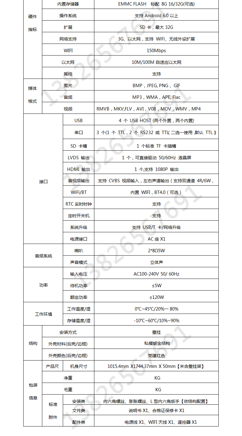 | 內(nèi)置存儲(chǔ)器 | EMMC FLASH 標(biāo)配 8G 16/32G(可選) |