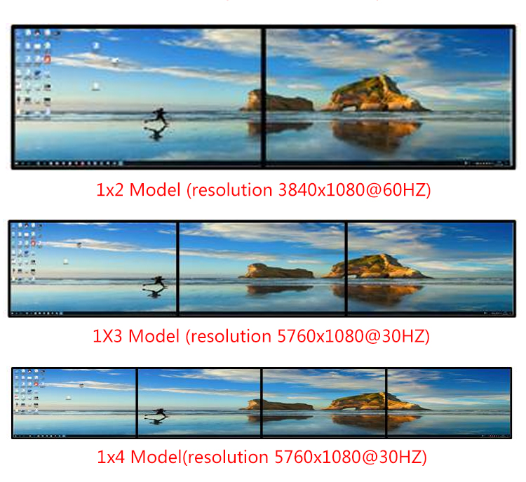 采用模塊化設(shè)計(jì),單機(jī)可定制2至24畫面拼接,如常用的1x2畫面拼接、2x2四畫面拼接、2x3或3x2六畫面拼接、2x4八畫面拼接、3x3九畫面拼接、2x5十畫面拼接、3x4十二畫面拼接等。